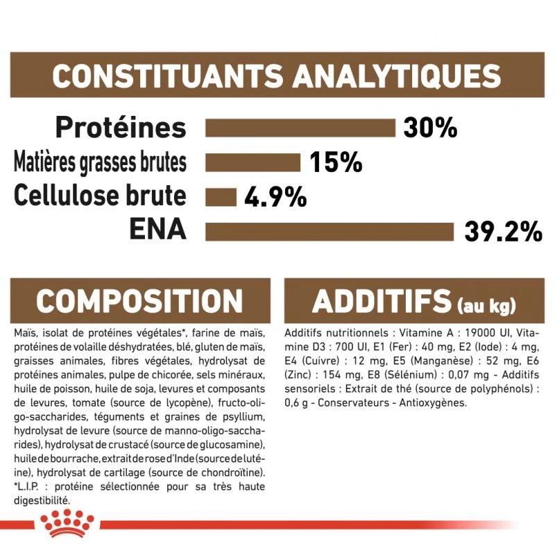 - Protéines brutes : 30%