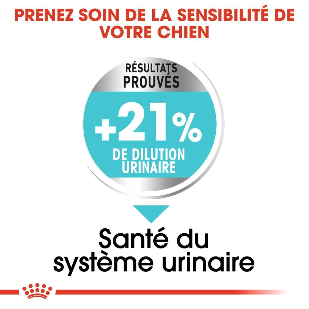 Les aliments ROYAL CANIN Urinary Care Mini conviennent aux chiens ayant un appareil urinaire sensible et pesant jusqu’à 10 kg.