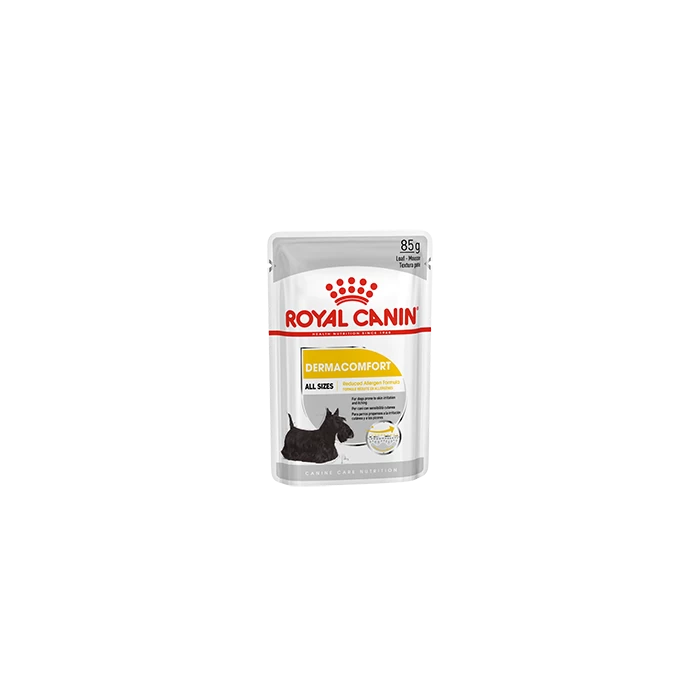 ROYAL CANIN® Dermacomfort en mousse convient aux chiens de toutes tailles.