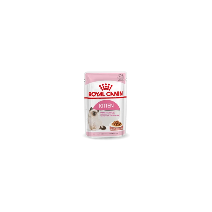 ROYAL CANIN Kitten émincé en sauce est spécialement conçu pour une mastication facile et convient également aux mères.