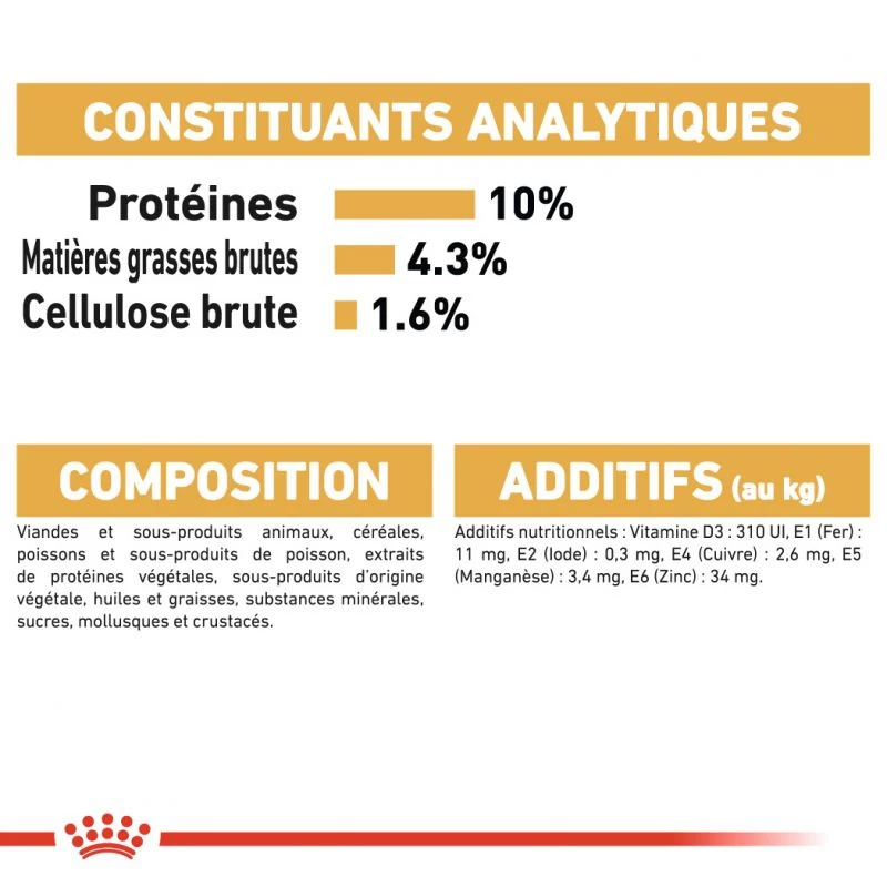 Les aliments humides ROYAL CANIN Maine Coon Adult sont très concentrés en énergie, ce qui permet de répondre aux besoins énergétiques élevés de ces grands chats.