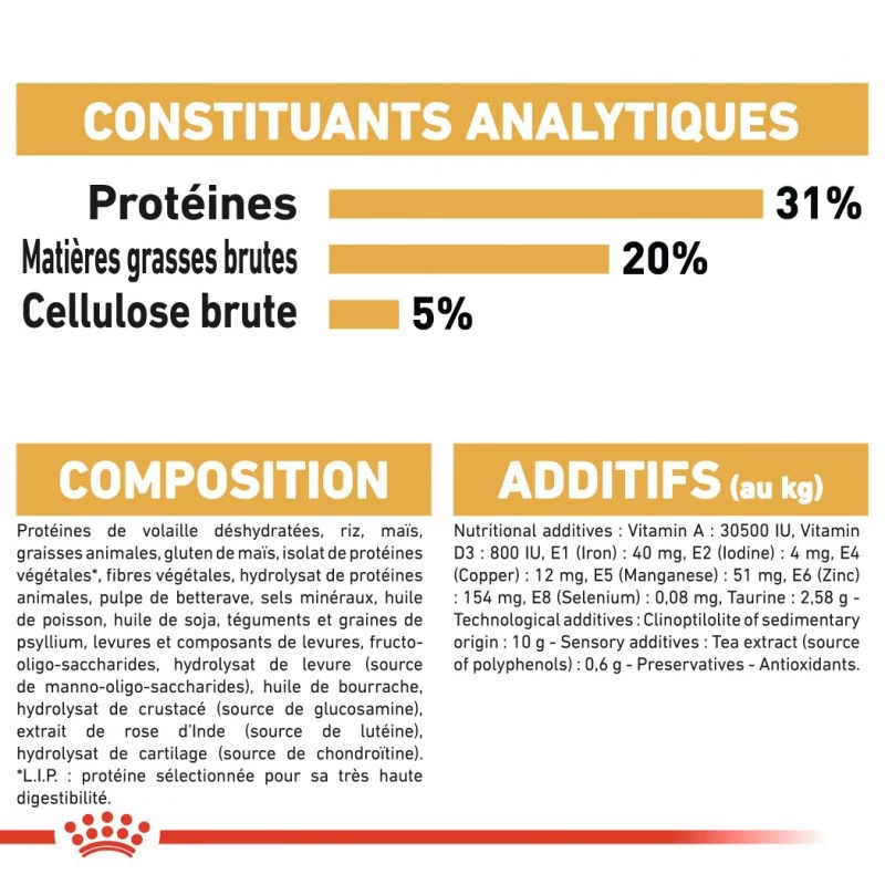 *L.I.P. : protéine sélectionnée pour une très haute digestibilité.