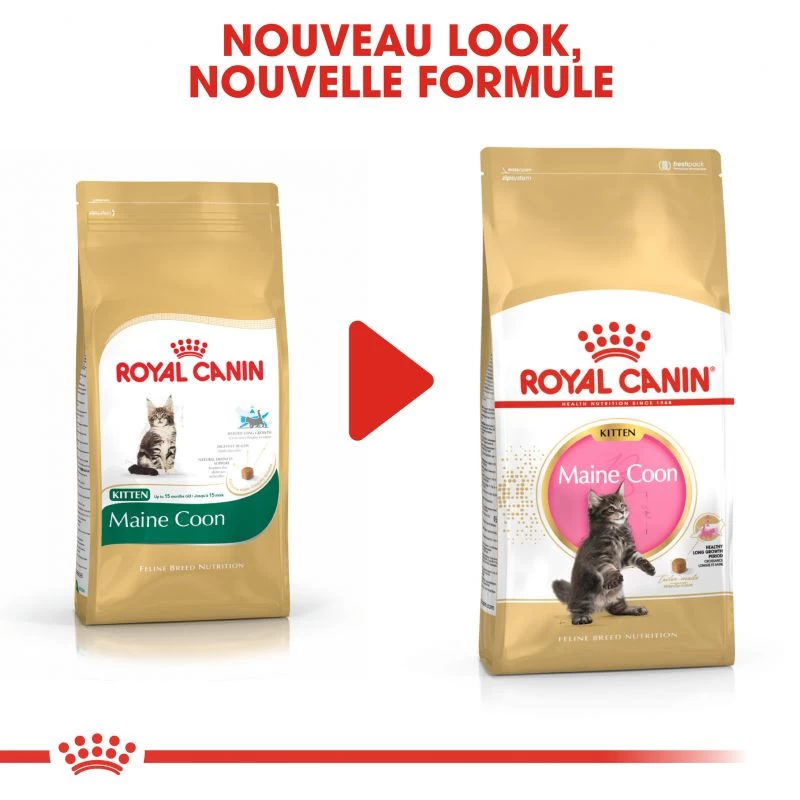 ROYAL CANIN Maine Coon chatons est spécialement développé pour les chatons Maine Coon jusqu’à l’âge de 15 mois. Une alimentation équilibrée assure le bon développement du chaton pendant toute la période de croissance. Le système digestif du chaton est encore en développement constant. Les protéines de haute qualité sont importantes pour une bonne digestion. ROYAL CANIN Maine Coon Kitten contient des protéines L.I.P. hautement digestibles et des prébiotiques pour équilibrer la flore intestinale. Le système immunitaire se développe tout au long de la période de croissance.