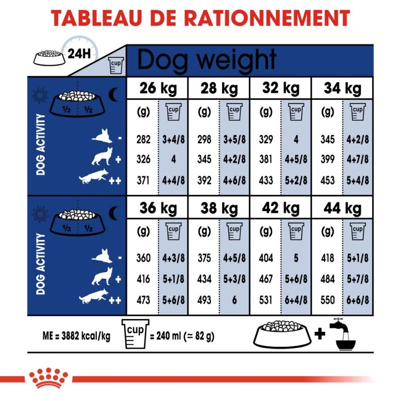 | Poids du chien | Faible activité | Activité normale | Activité élevée |