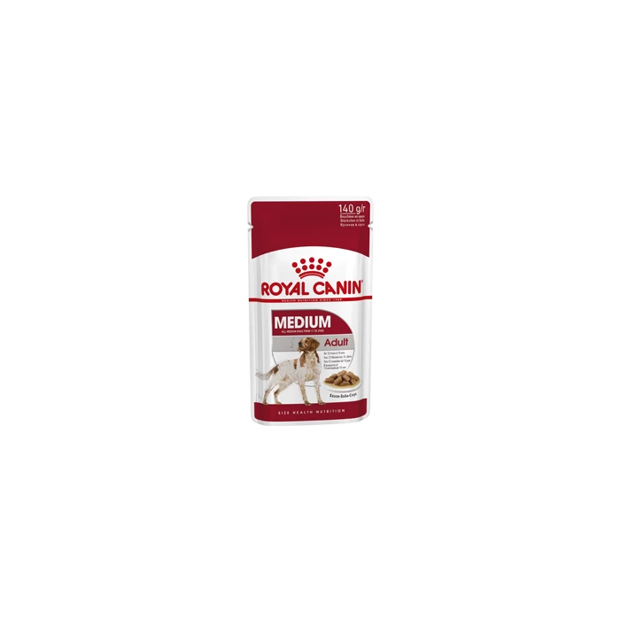 ROYAL CANIN® Medium Adult in Gravy (en sauce) est spécialement formulé pour répondre à tous les besoins nutritionnels de votre chien adulte de taille moyenne et convient aux chiens âgés de 12 mois à 10 ans. pesant entre 11 et 25 kg.
