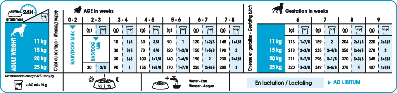 Le profil nutritionnel est adapté aux besoins énergétiques accrus de la chienne à la fin de la gestation et pendant la lactation. - Réhydratation facile