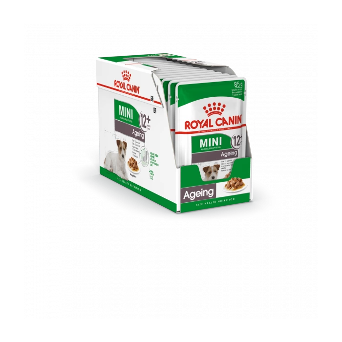 ROYAL CANIN® Mini Ageing 12+ in Gravy (en sauce) est spécialement formulé pour répondre à tous les besoins nutritionnels de votre petit chien et convient aux chiens de petite taille de plus de 12 ans. pesant jusqu’à 10 kg.