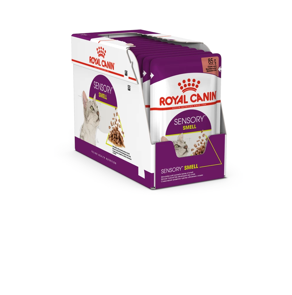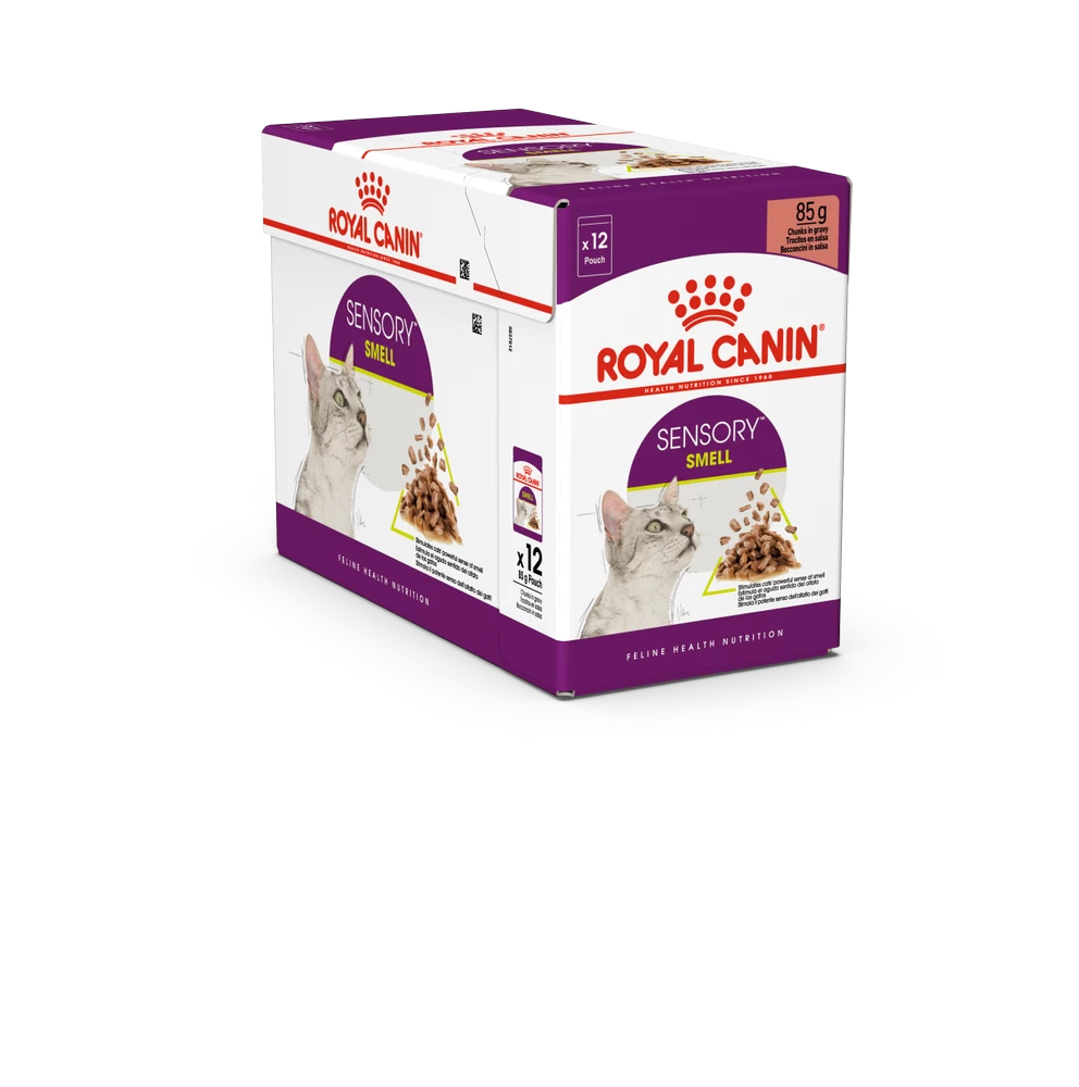 ROYAL CANIN® Sensory Smell nourriture humide, morceaux en sauce 12x85g a été spécialement développé pour stimuler le fort odorat de votre chat, tout en favorisant une santé et un bien-être optimaux.