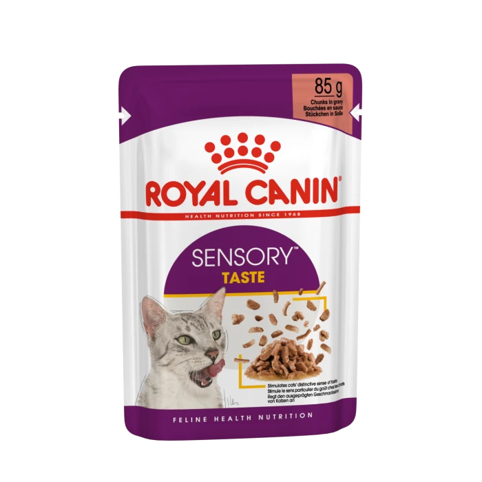 Pour satisfaire les préférences alimentaires de chaque chat, ROYAL CANIN® Sensory Taste est également disponible en gelée pour une variété optimale de saveurs et de textures. Les autres aliments de la gamme ROYAL CANIN® Sensory comprennent Sensory Smell et Sensory Feel, chacun proposant sa propre formule attrayante pour stimuler l’appétit de votre chat et lui offrir une expérience alimentaire riche en sensations.